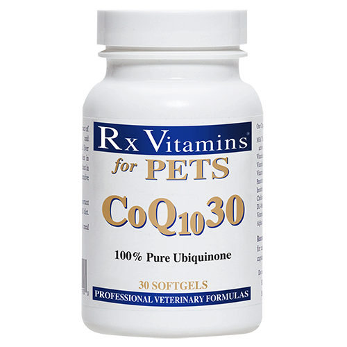 CoQ10-30 is the highest quality Coenzyme Q10 supplement available for pets. Each soft gelatin capsule is hermetically sealed to provide maximum biological activity, bioavailability and stability. CoQ10-30 is comprised of 100% pure ubiquinone.