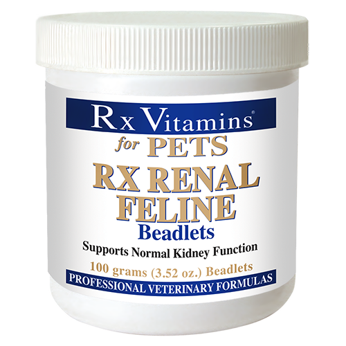Rx Renal Feline beadlets is a complex formulation of multiple botanical extracts and nutraceuticals. This unique formula has been enveloped with glycerol stearate, a bland, lipophilic material that renders the taste completely bland and acceptable to the feline patient.