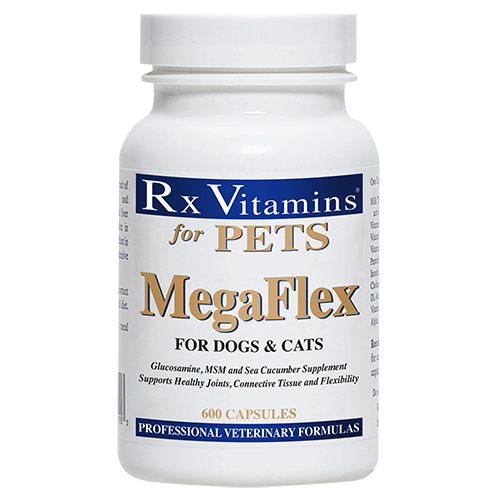MegaFlex is comprised of important nutrients for dogs and cats to complement their overall diet. MegaFlex is a high potency formula designed to nourish and support connective tissue for healthy, flexible joints and comfortable movement. The formula features glucosamine sulfate, a critical precursor of synovial fluid and a necessary nutrient for rebuilding cartilage and improving joint function. Research studies at leading institutions have shown that glucosamine sulfate has a low molecular weight, thus enabling it to easily penetrate the villi of the small intestine and thus be well absorbed and utilized.