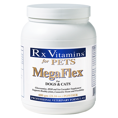 MegaFlex is comprised of important nutrients for dogs and cats to complement their overall diet. MegaFlex is a high potency formula designed to nourish and support connective tissue for healthy, flexible joints and comfortable movement. The formula features glucosamine sulfate, a critical precursor of synovial fluid and a necessary nutrient for rebuilding cartilage and improving joint function. Research studies at leading institutions have shown that glucosamine sulfate has a low molecular weight, thus enabling it to easily penetrate the villi of the small intestine and thus be well absorbed and utilized.