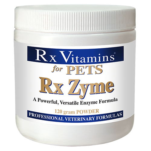 Rx Zyme is the most comprehensive and versatile enzyme preparation ever introduced in the veterinary industry. Rx Zyme features a proprietary, high-potency, digestive enzyme blend combined with selected nutraceuticals and botanicals designed to address overall digestive function, promote the breakdown and absorption of food and its nutrients and support the normal digestion of protein, fats and carbohydrates.
